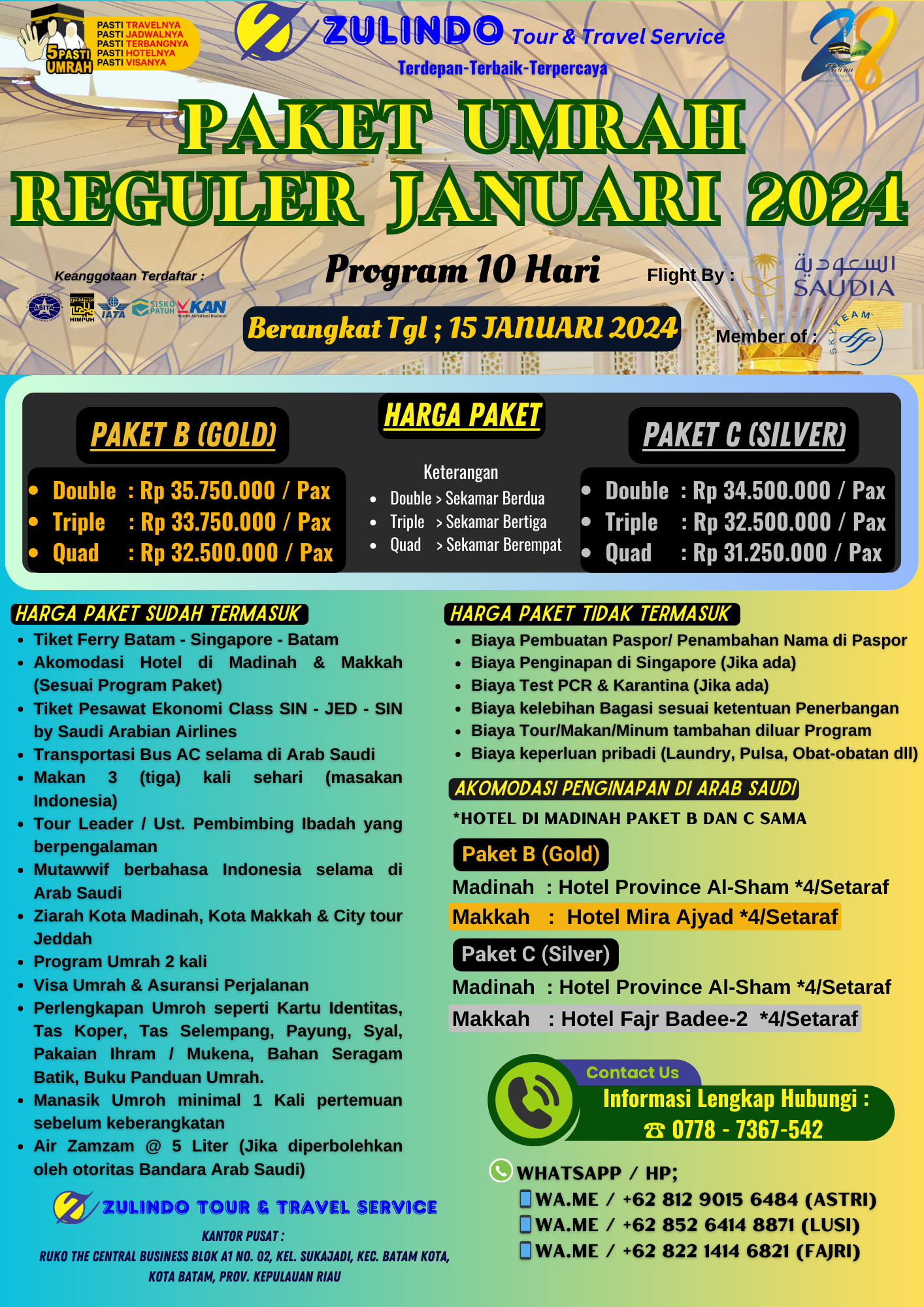 PAKET UMROH REGULER JANUARI 2024//PROGRAM 10 HARI//BERANGKAT TANGGAL 15 JANUARI 2024